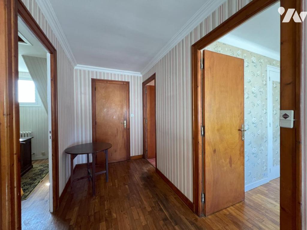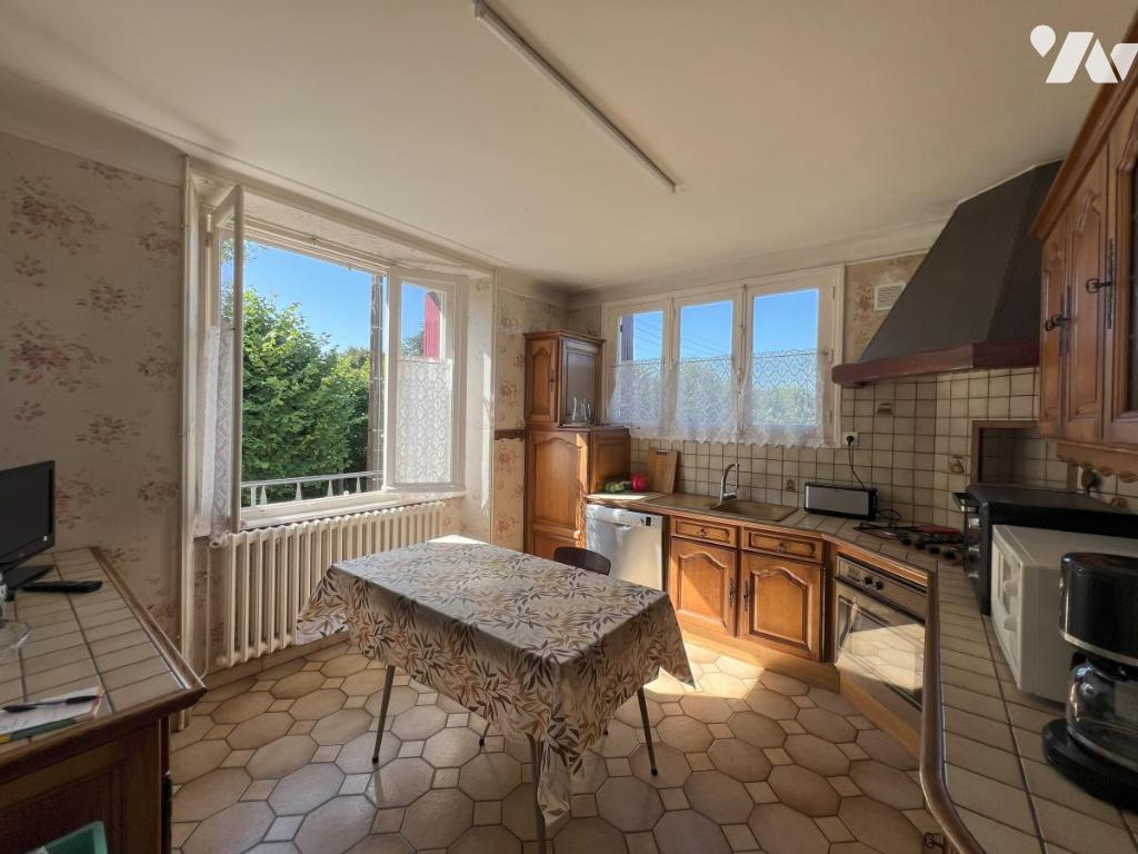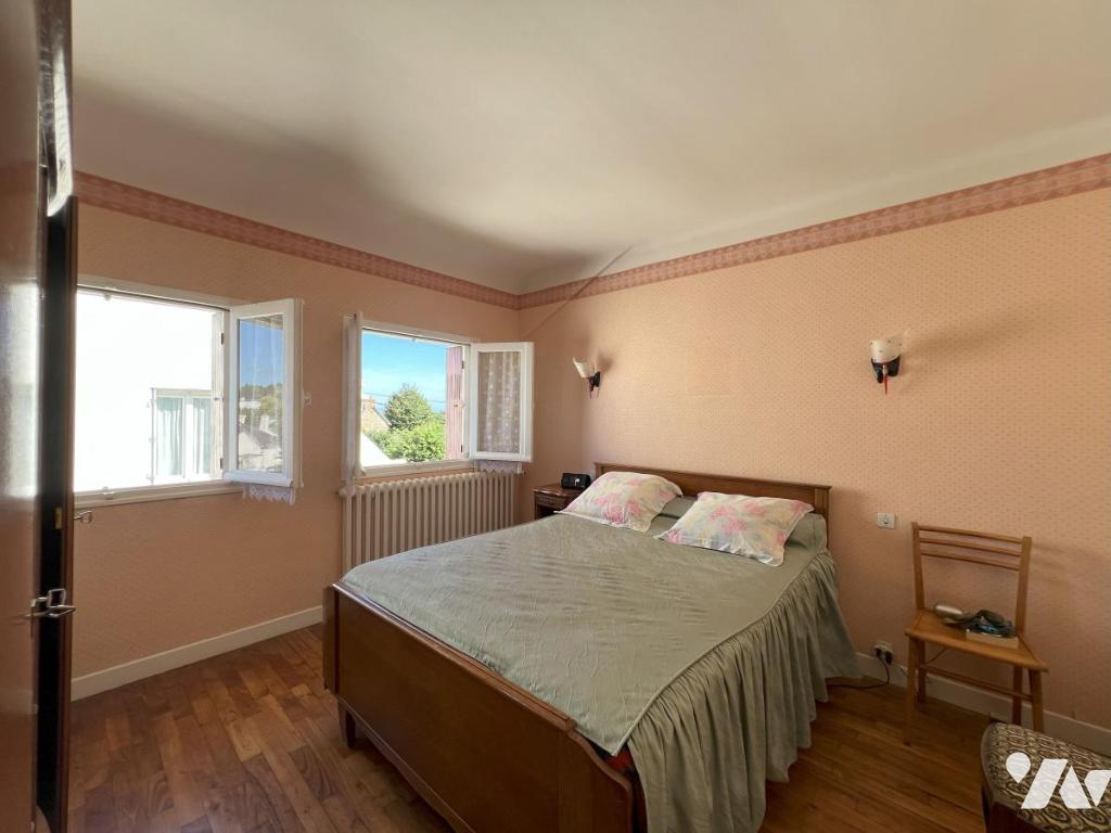 ETABLES SUR MER - Maison des années 1960 sur terrain de 500 m² comprenant : Hall d'entrée, cuisine aménagée, séjour-salon avec foyer fermé, une chambre, wc. A l'étage : palier, trois chambres, salle de bains, débarras. En rez-de-jardin : garage, buanderie-chaufferie, appartement comprenant : cuisine, wc, salle d'eau, une chambre. Jardin, La plage et les commerces à pied, prévoir travaux.